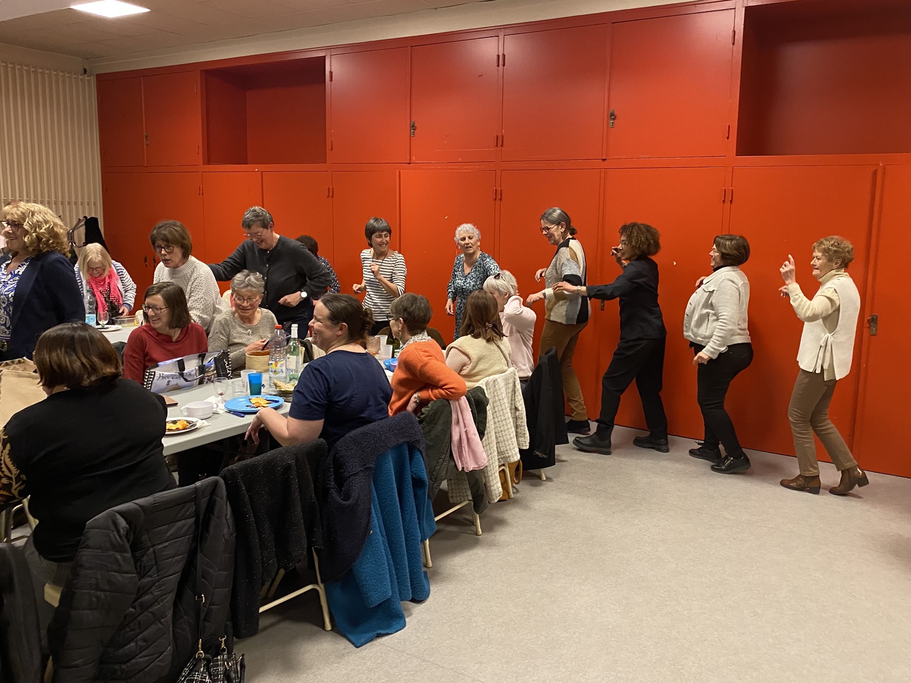 Aurélie, malgré un mal de dos un tantinet encombrant, a su nous concocter un programme musical tonique, ludique, euphorisant. Elle mène la danse avec ardeur. Marie-Françoise, en grande forme, n’est pas en reste pour entraîner l’assemblée dans une ambiance festive, déjantée parfois.